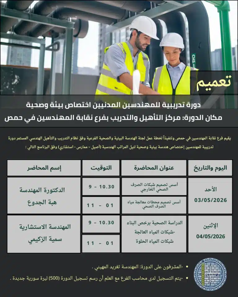 دورة تدريبية للمهندسين المدنيين اختصاص بيئة وصحية