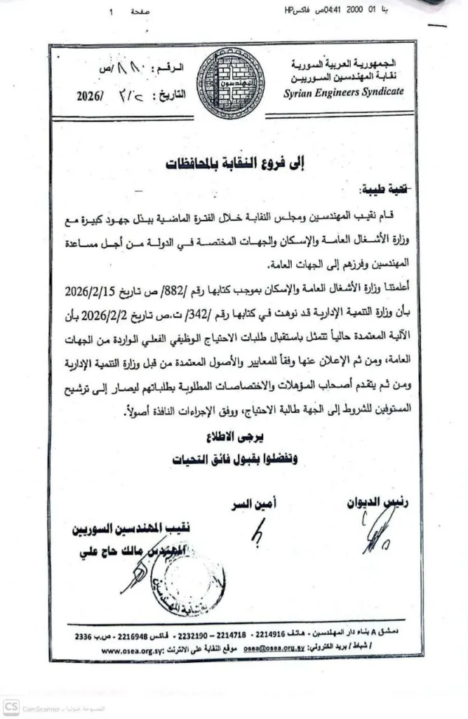 نود إعلامكم بأنه تم اعتماد آلية جديدة لاستقبال طلبات الاحتياج الوظيفي الفعلي من الجهات العامة، وفق المعايير والأصول المعتمدة، وذلك بالتنسيق مع الجهات المختصة.