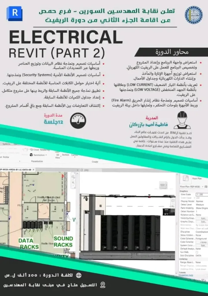 دورة الريفيت الكهربائي (الجزء الثاني ) تعلن نقابة المهندسين في حمص عن إقامة دورة تدريبية تخصصية في برنامج ريفيت للأعمال