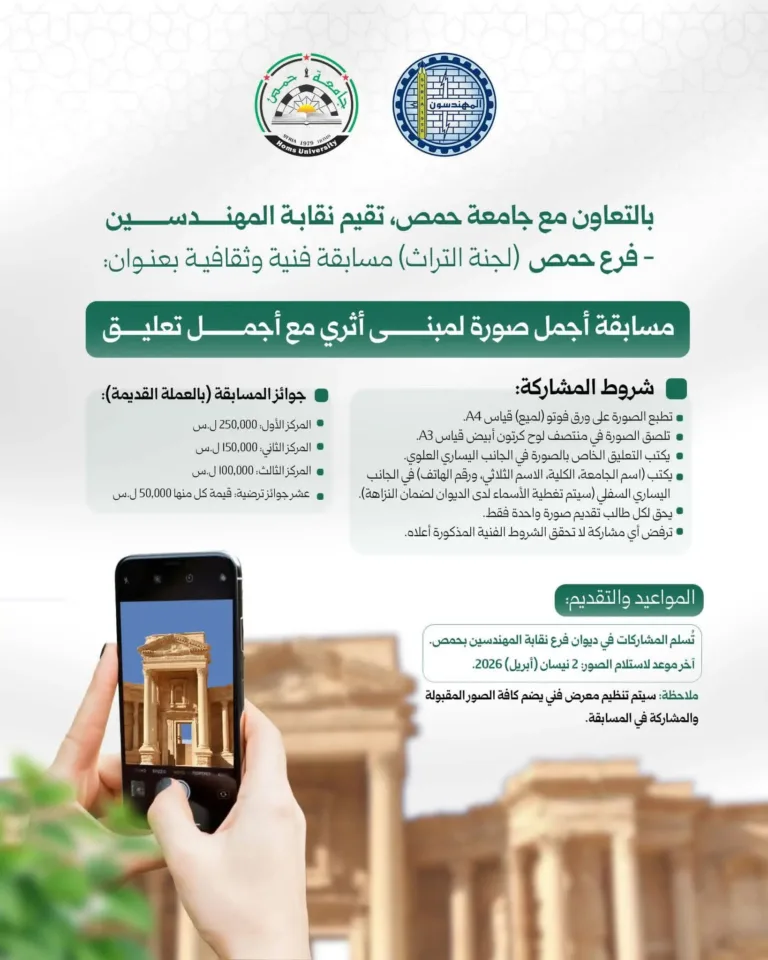 تعلن نقابة المهندسين السوريين بالتعاون مع جامعة حمص